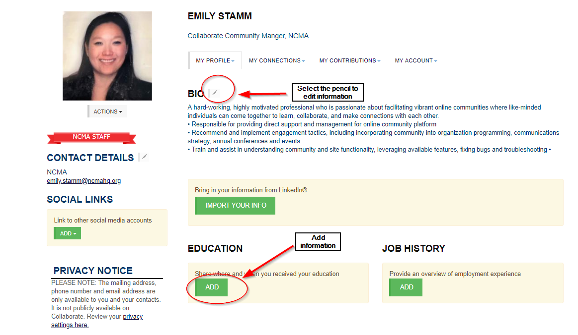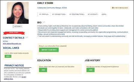 Welcome to Collaborate, NCMA’s members-only online forum. This Quick Start Guide is designed to help you derive immediate value from the platform. If you have any questions or issues upon reviewing this guide, please contact Member Services at memberservices@ncmahq.org.
