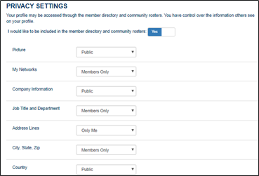By default, you are included in the directory that is accessible to other community members. This is useful to help you network with other members and send private messages. We recommend that you remain in the directory for these reasons, but you can opt-out if you'd like. You can also choose how much of your profile is visible to others.