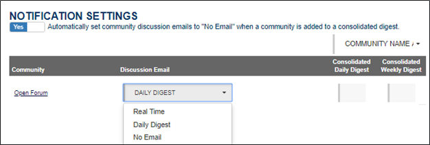 2. In Notification Settings, locate the community for which you would like to adjust notifications and click the Discussion Email