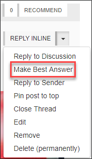 2. Click the arrow next to the Reply Inline button and select Make Best Answer from the drop-down.
